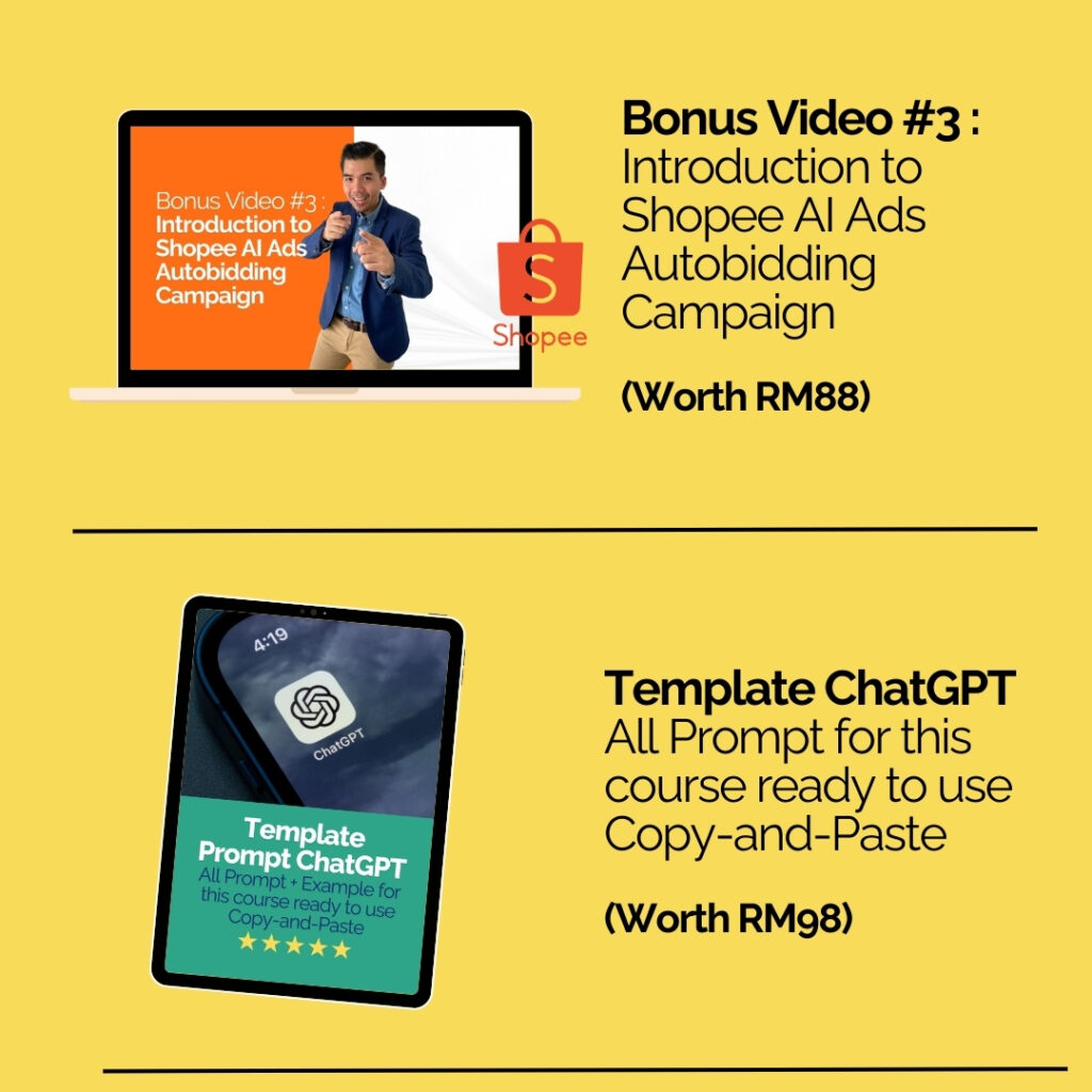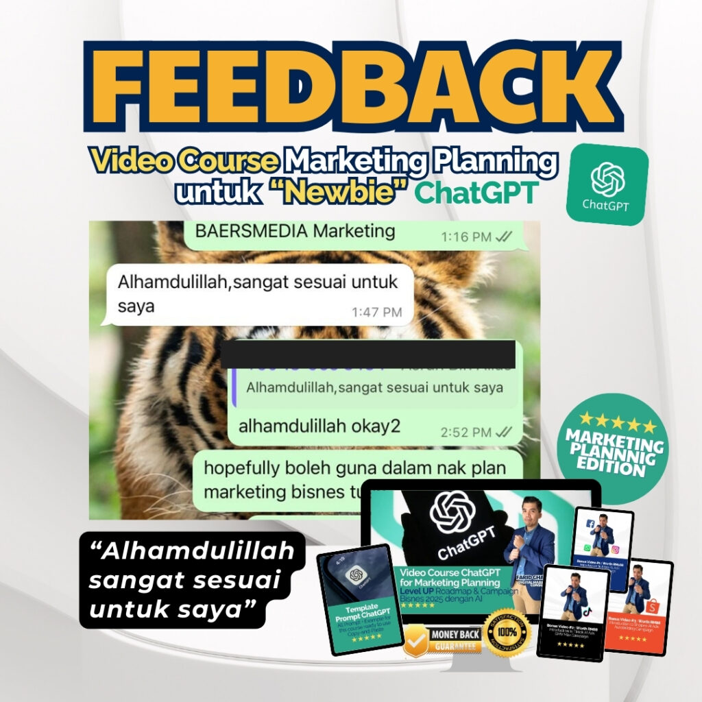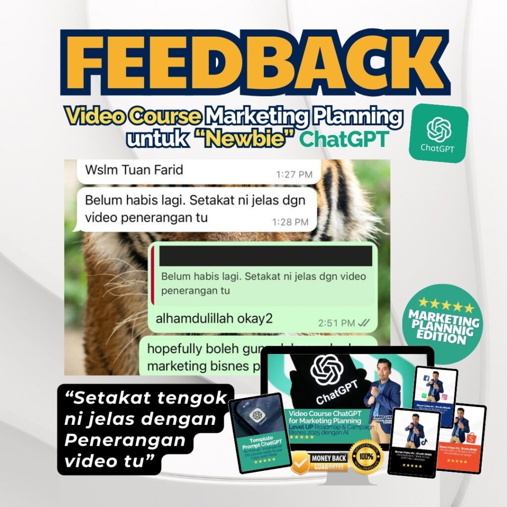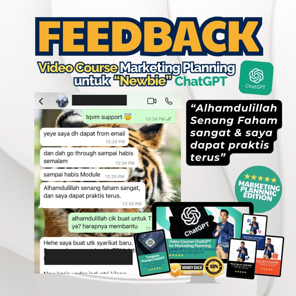 Anda akan dapat Link Khas ke Video Rakaman (termasuk Video Bonus) & anda akan dapat ChatGPT Prompt Template beserta contoh, seperti yang akan digunakan dalam video